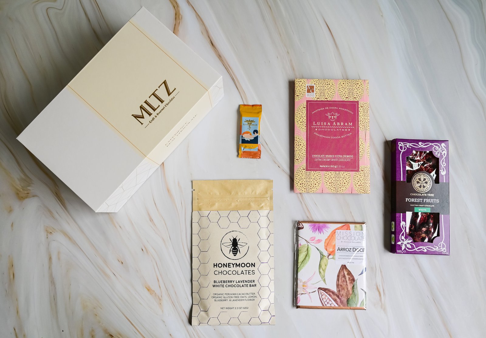- Honeymoon Chocolates – Blueberry Lavender White Bar 62g (USA) : Uses honey as the sweetener instead of sugar and hence, Honeymoon.