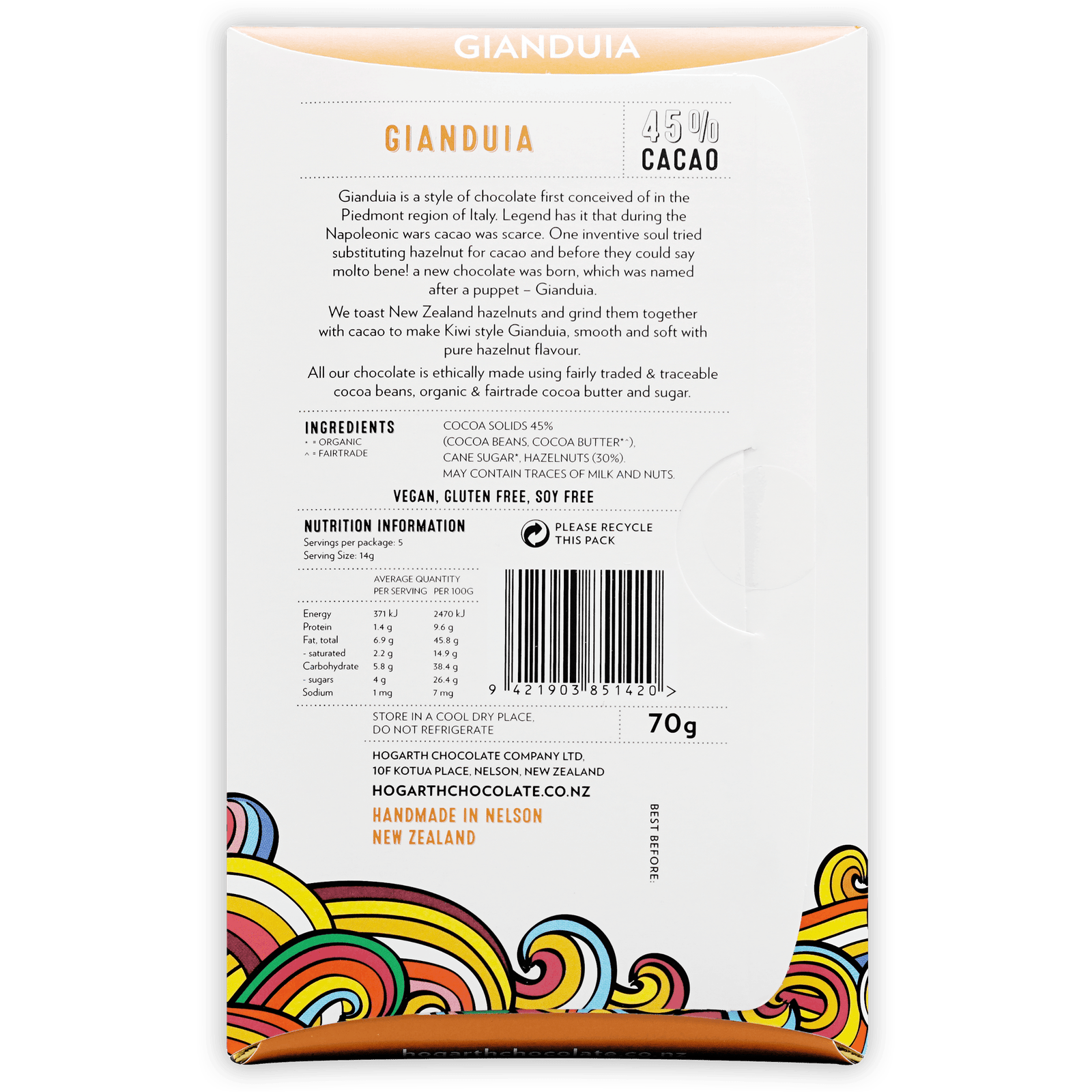 | Ingredients | Cacao Beans, Cacao Butter (Organic), Cane Sugar (Organic), Hazelnuts (30%) |
