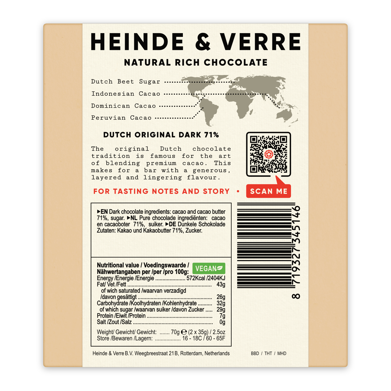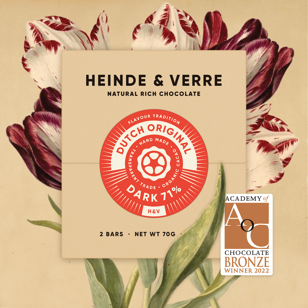 A variety of in-house developped techniques is used to craft the unique Heinde & Verre chocolate. The cacao beans of one single farmer are handselected and rosted in multiple ways to bring out as many flavours as possible.