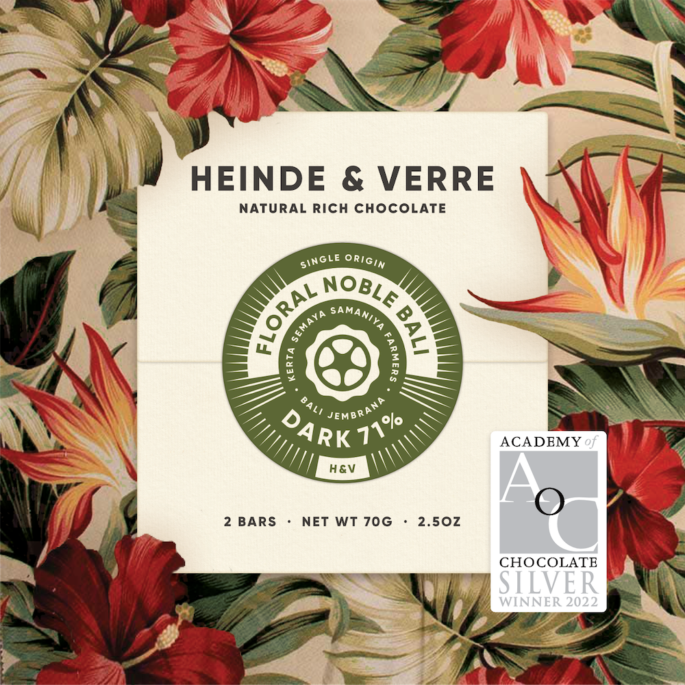 Discover from the beautiful green western part of Bali the distinct character of Balinese cacao. This bar excites the senses with a natural rich floral bouquet. It is this combination of flowers and typical warm Indonesian chocolate that makes this bar special. Makes you dream of Bali. Combined with locally sourced (The Netherlands) beet sugar allows the Balinese cacao to be fully appreciated.