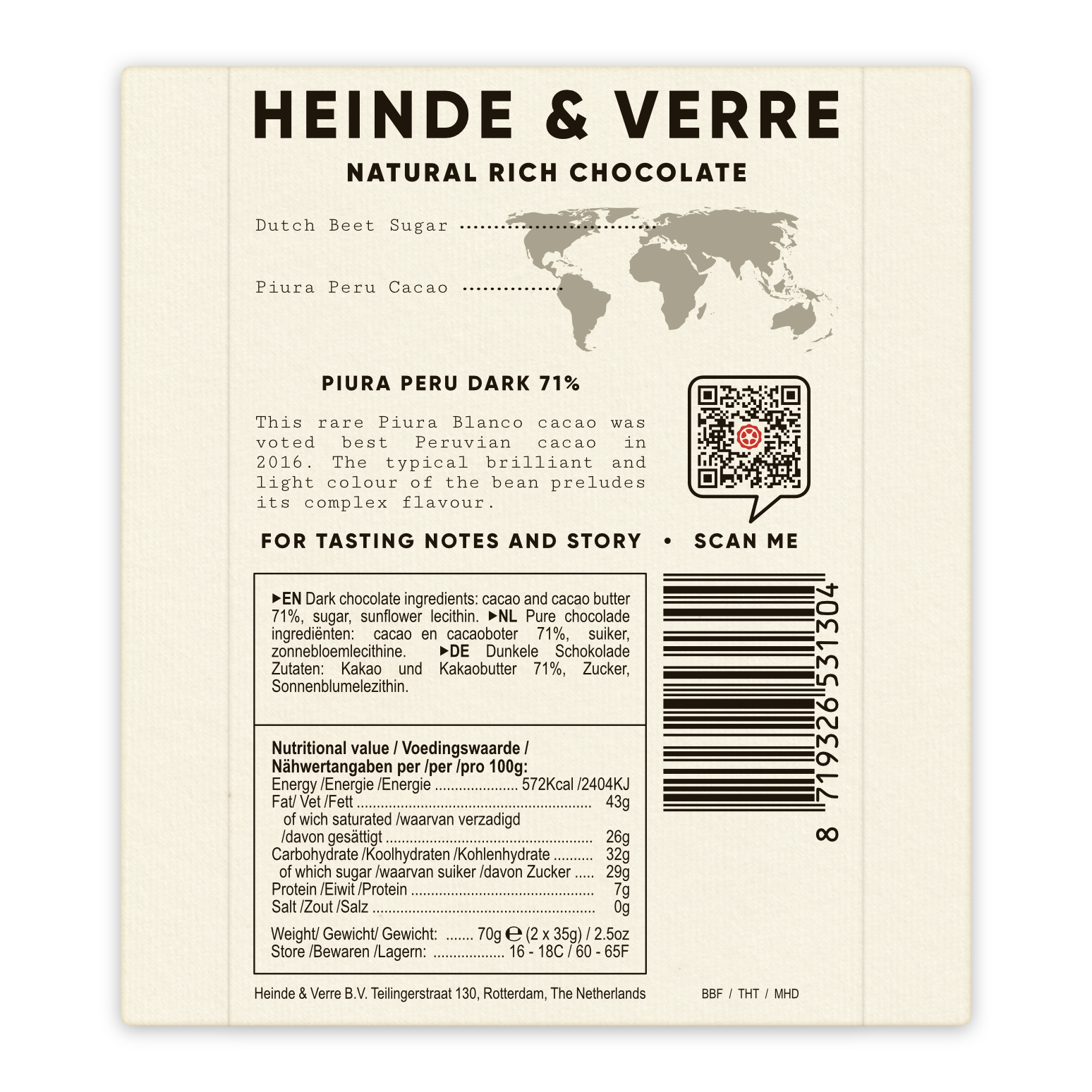 A variety of in-house developped techniques is used to craft the unique Heinde & Verre chocolate. The cacao beans of one single farmer are handselected and rosted in multiple ways to bring out as many flavours as possible.
