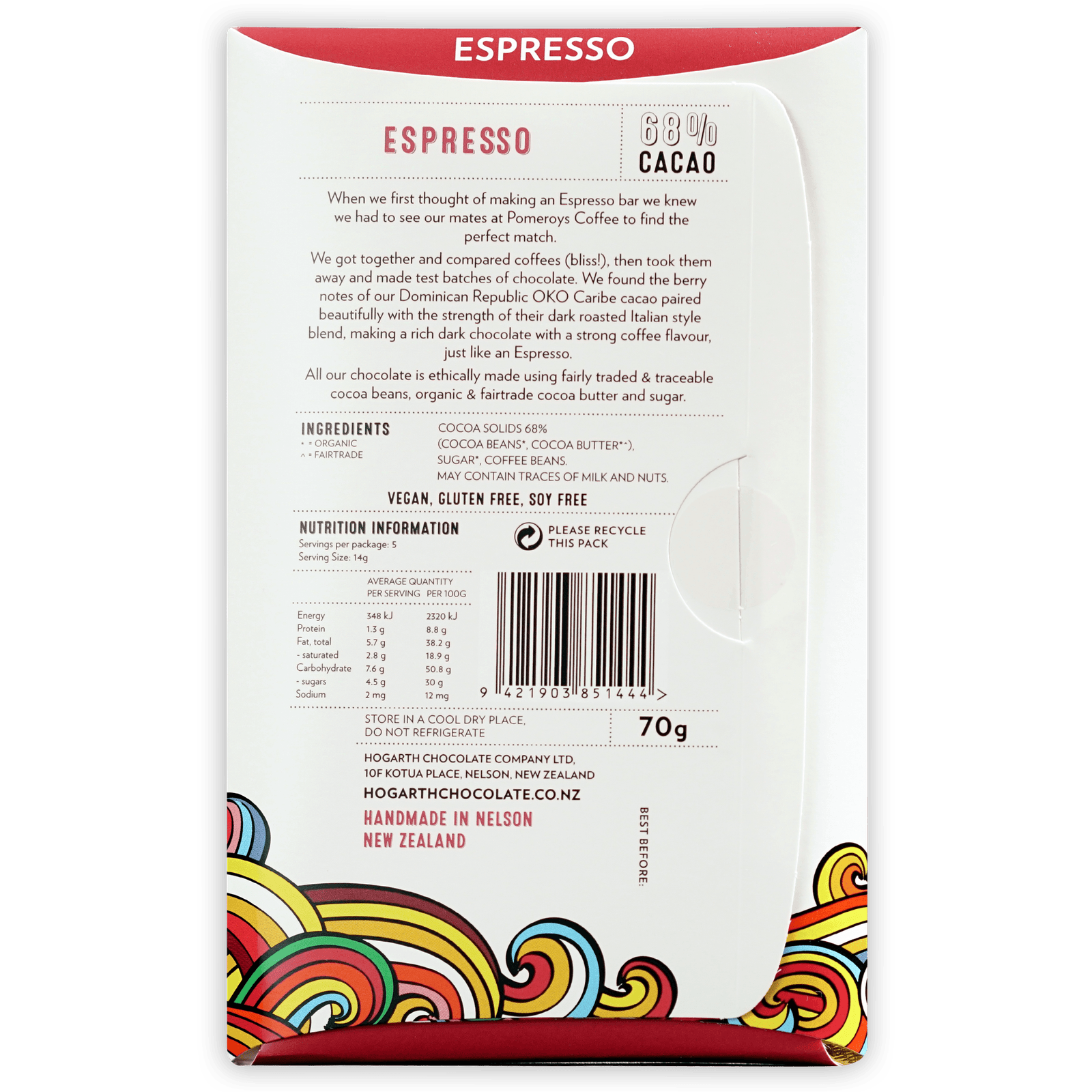 This bar is made of 68% Organic Trinitario cacao beans from Oko Caribe, Dominican Republic, and Pomeroy’s Italian style coffee blend. Nestled in the heart of the cacao rich Duarte province in the Dominican Republic, Oko Caribe is a gem amongst cacao suppliers. Founded in 2006 by Adriano Rodriguez and Gualberto Acebey Torrejon, two professionals with large experience in cocoa production across Latin America. Oko Caribe maintains close relationships with its farmers which receive direct training and funding.