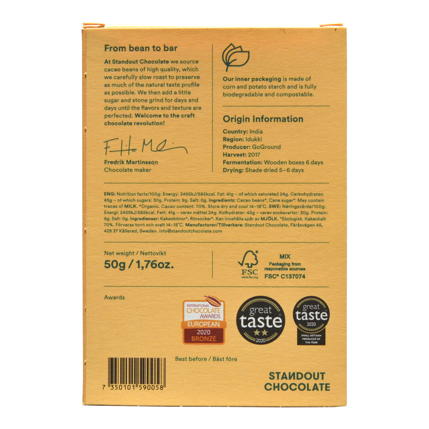 Award Winner: Academy of Chocolate 2020 –  Bronze Winner