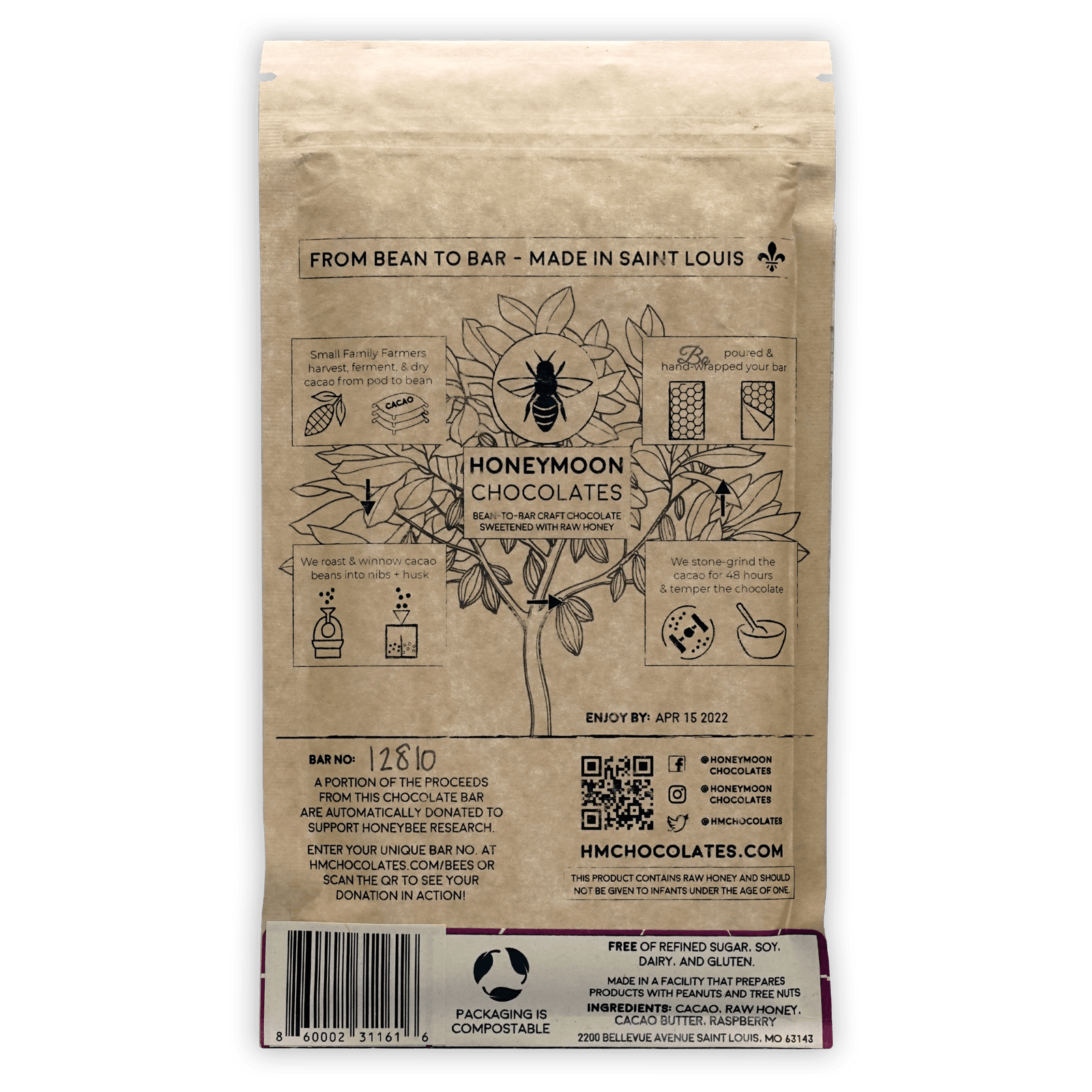 This bar perhaps has more fans than any other from Honeymoon Chocolates! And it’s not without a reason!! This blend of 70% Ucayali River Peruvian Cacao, added in Pure Raspberries and then Raw Honey is an absolute delight. While the 70% Peru base boasts strong flavors of strawberries, this bar has an additional raspberry zing. Our Raspberry Bar is free of refined sugar, soy, dairy, and gluten.