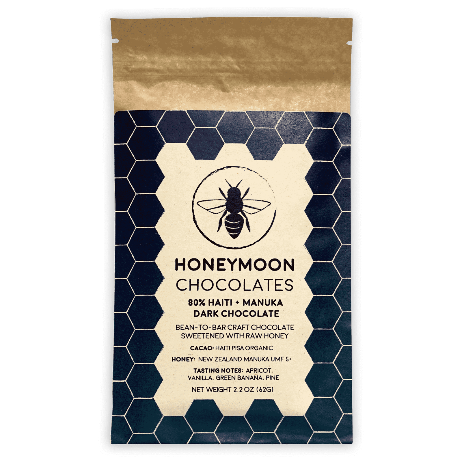 One of the only bars ever sweetened using only Manuka Honey. Savory and buttery Haiti PISA cacao pairs with a strong floral and fruity UMF 5+ New Zealand Manuka Honey. Tasting notes include Apricot, Vanilla, Green Banana, and Pine.