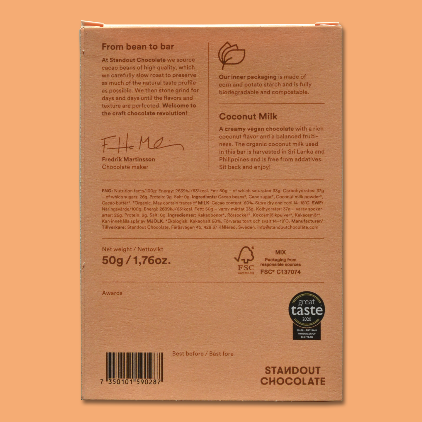 | Ingredients | Cacao Beans (Organic), Cacao Butter (Organic), Cane Sugar (Organic), Coconut Milk Powder (Organic) |
